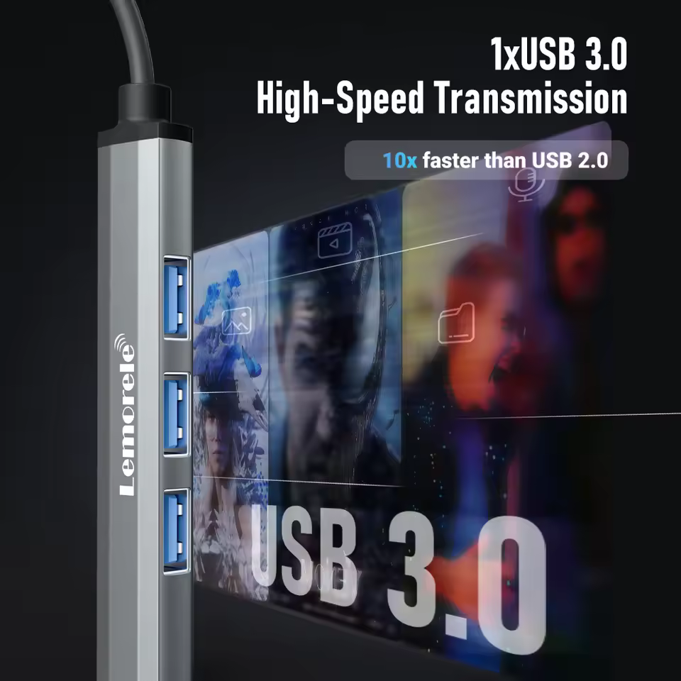 Lemorele 120cm 4 포트 USB 허브 OTG USB A 3.0 어댑터 멀티 분배기 어댑터 Xiaomi Lenovo Macbook Pro 용 노트북 액세서리