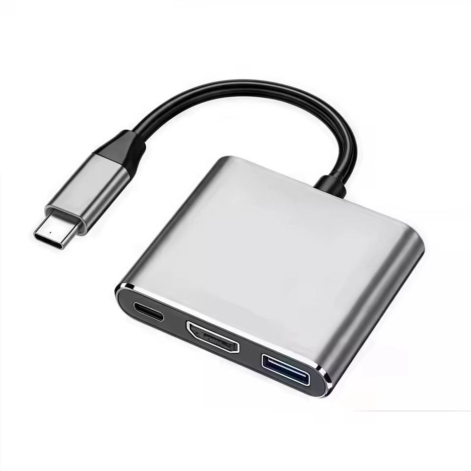 USB C 허브 어댑터 4K HDMI, 3-in-1 USB C 남성-여성 컨버터 (USB 3.0 및 MacBook Air 12 충전 기능 포함)